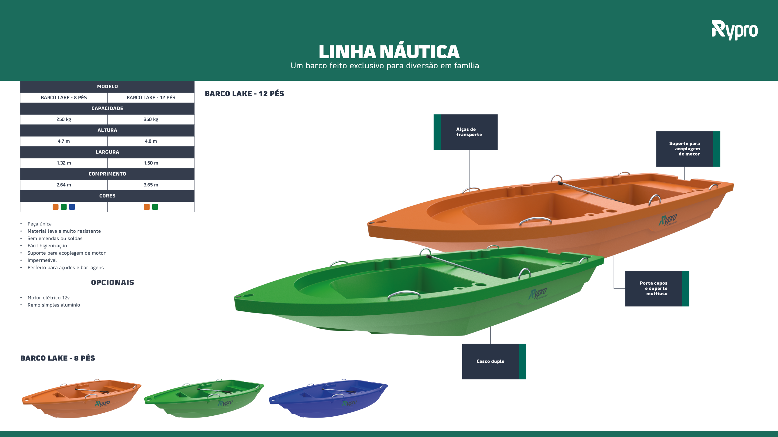 Barcos Lake para os momentos de lazer e diversão para a sua família e amigos. Disponíveis em 2 modelos, 8 e 12 pés.