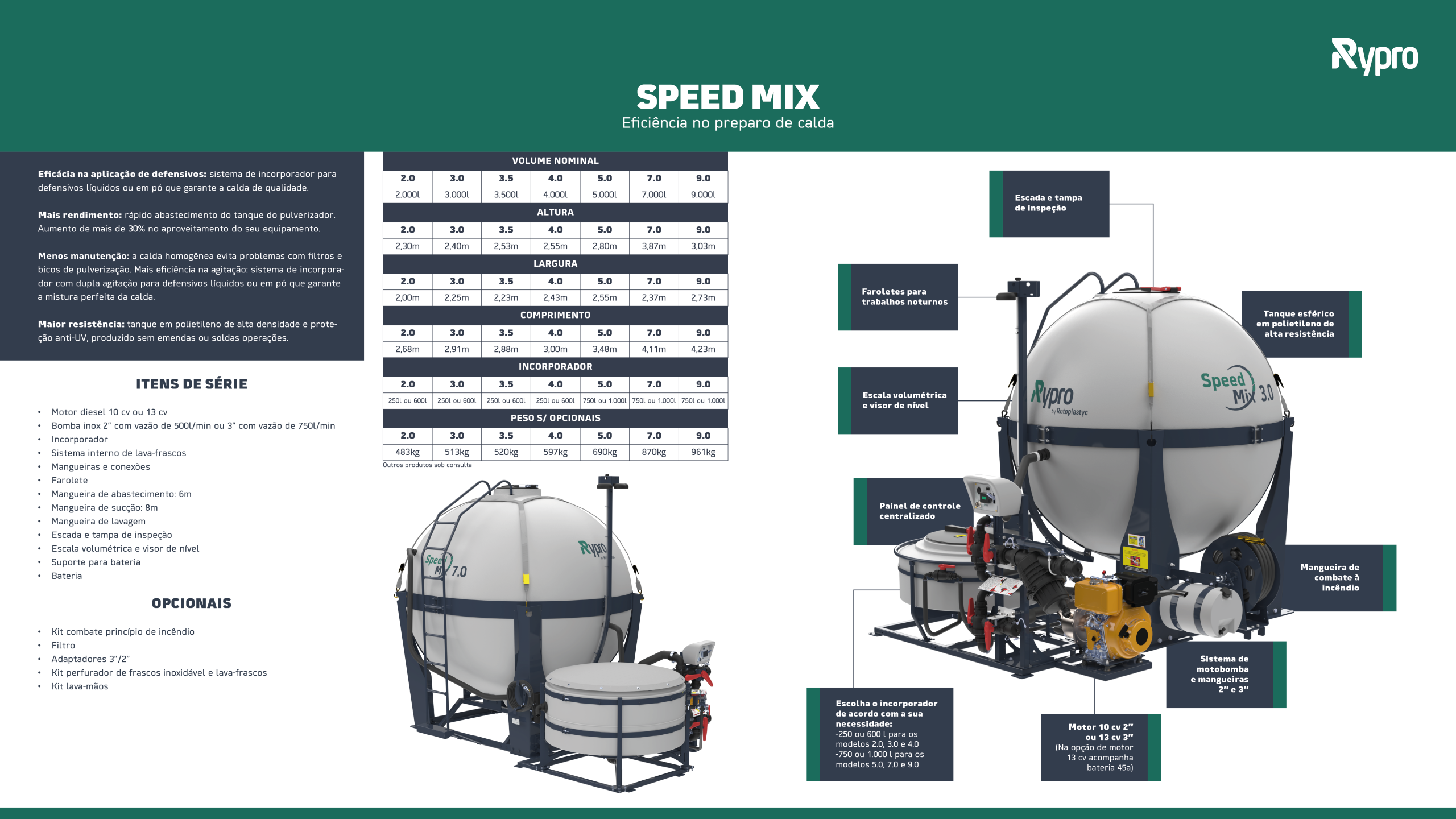 Speed Mix é a solução para ter mais eficiência no preparo de calda para pulverização, tornando fácil a incorporação de defensivos, líquidos ou em pó, e resultando em melhor qualidade da calda.