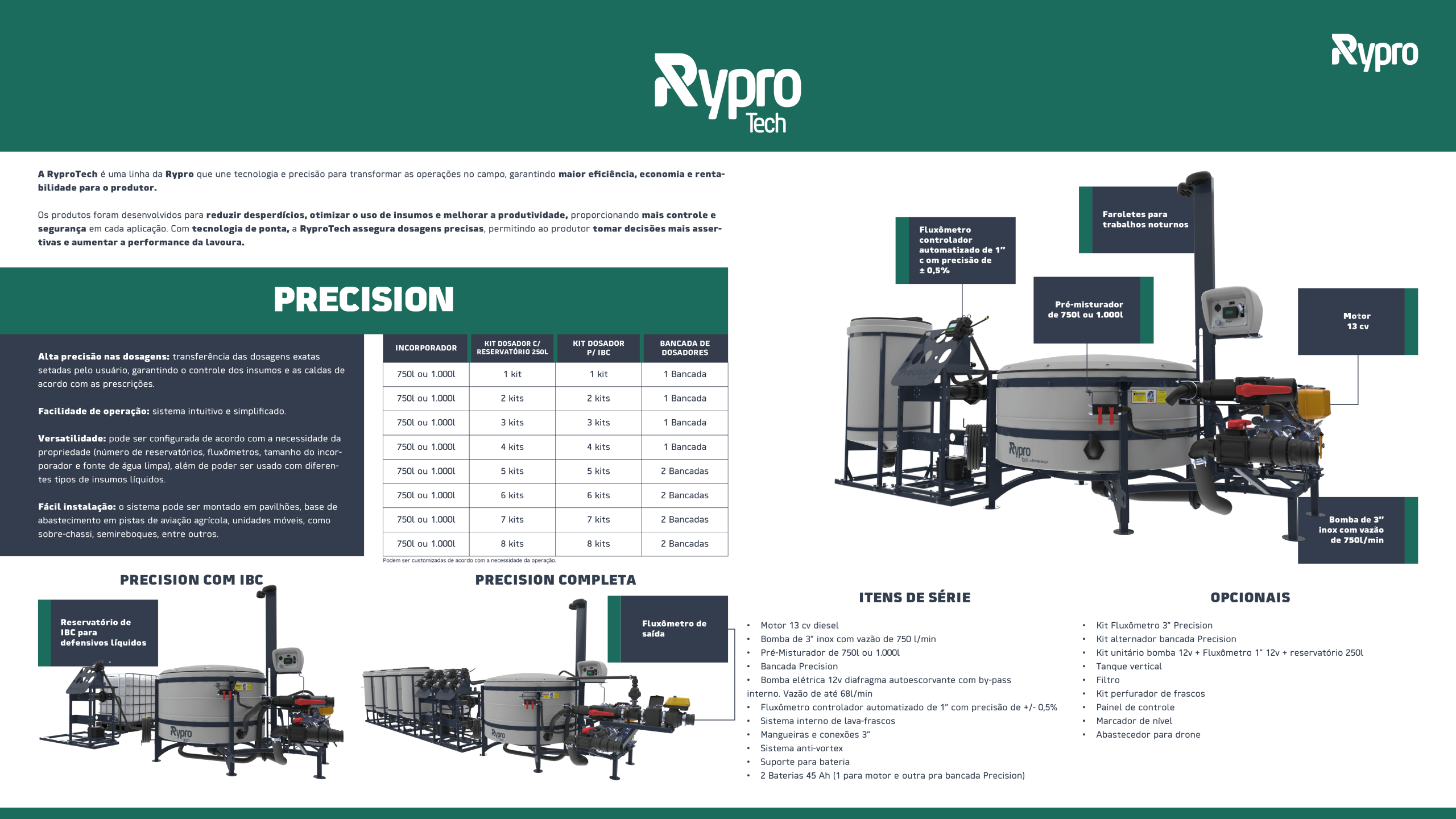 O sistema PRECISION garante máxima eficiência na preparação e transferência de calda, além da excelência na diluição e homogeneização de produtos sólidos. Garantia de qualidade Rypro.